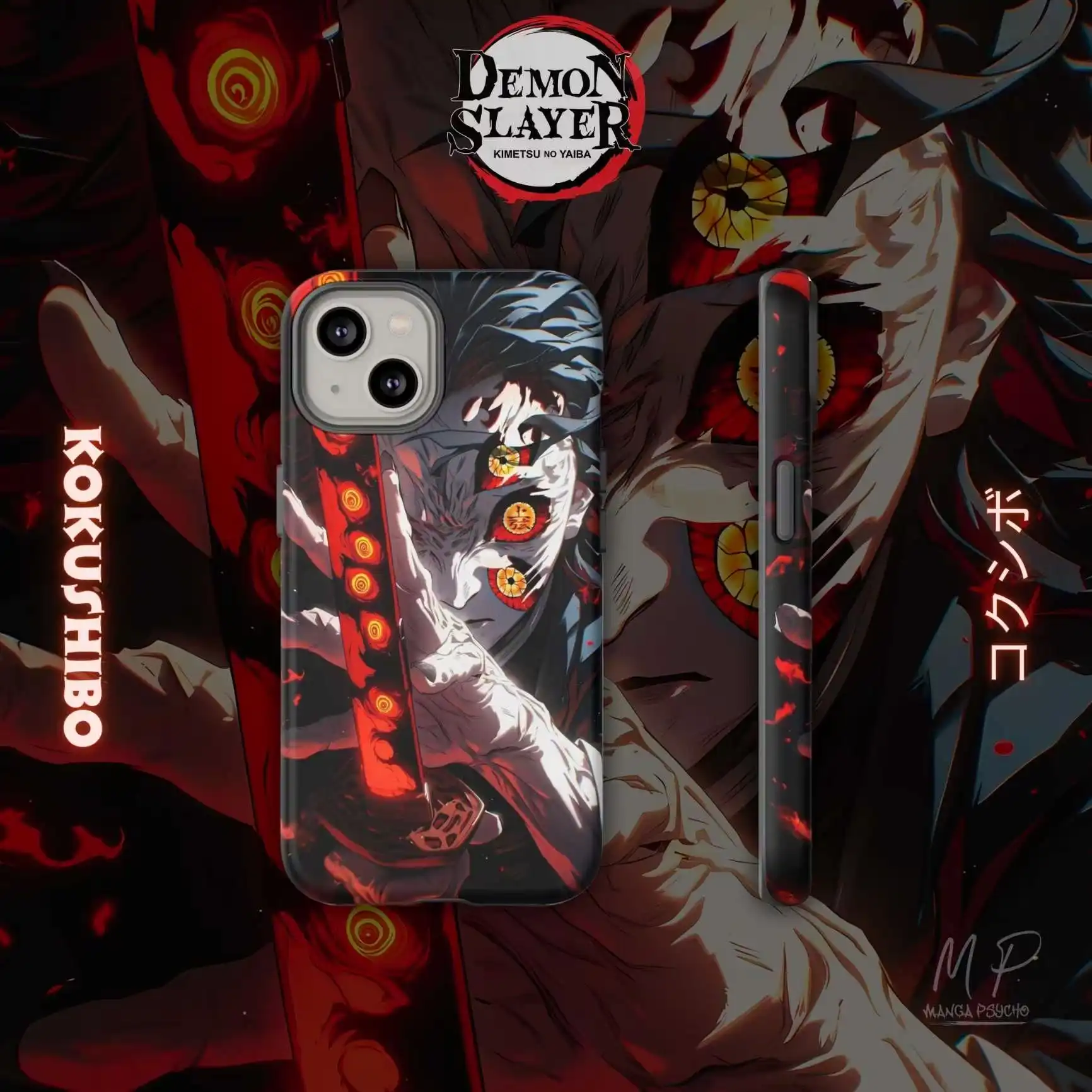 - Features high-resolution artwork of Kokushibo with his signature six eyes and crimson katana, emanating his dark aura.